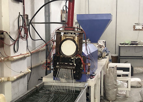 Cooling tank is fabricated from stainless steel sheet, which mounted on height adjustable fabricated stand. Where guide rollers are provided to convey the strands forward towards pelletizing unit.